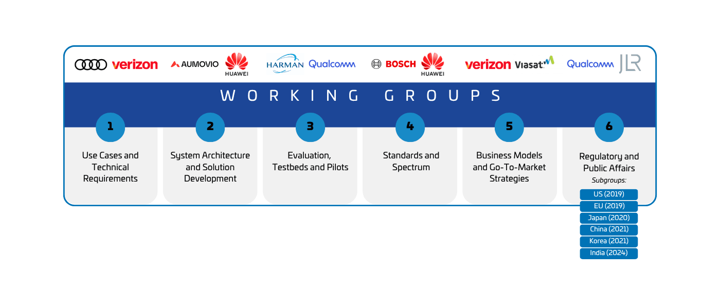 In order to address society’s transport needs, 5GAA has seven working groups focused on:
